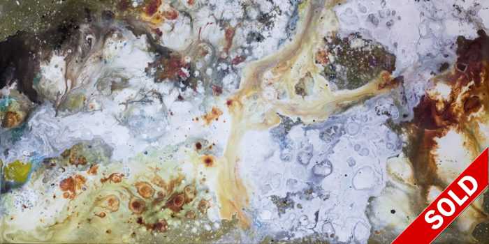 This acrylic painting was done on a custom made white maple panel and has a hand poured resin finish. It was sold to lovely collectors who are getting more attractive, and smarter by the day. It came ready to hang with all hardware, and was delivered free within the US- because Drew is that kind of guy. If you love it… Please get in touch with us at gallery@besonart.com. As this painting was eligible for our Lifetime Exchange policy, it could be available someday and you will be the first to know!